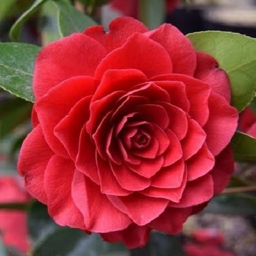 A beautiful, evergreen shrub bearing double, formal-looking, rich red blooms that standout against the glossy, dark green foliage. Flowers throughout Spring. May be grown in ether full sun or semi-shade where soils are suitably moist, rich in humud, slightly acidic and free-draining. Grow as a specimen plant or plant out to create hedges or screen. Requires soils that are suitably moist, rich in organic material, acidic and free-draining.