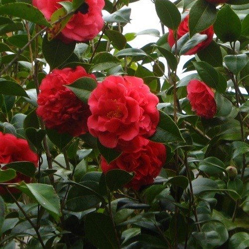 A Brilliant deep red, free flowering camellia over an extended period. Flowers are large and informal doubles. Strong, dense growth and faster growing and is ideal for hedges and screening. Best with some Summer shade and watering.