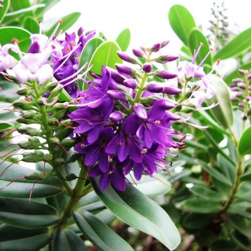 A bushy shrub that is hardy and evergreen and produces a mass of violet-blue flower spikes during summer and into autumn. Grows well in full sun or partial shade with free-draining soils. Tolerates exposed, coastal situations and is best trimmed after flowering has finished.