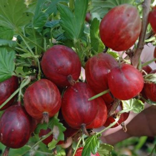 The dark red fruit are produced on a vigorous almost spineless plant. Tasty and good eating. Ripens early summer.