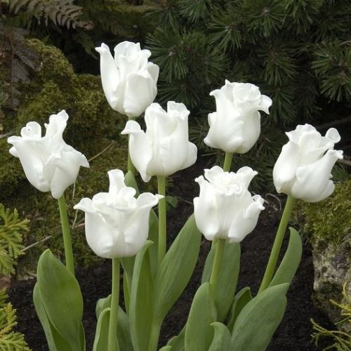 This lily flowered Tulip boasts a large pure white bloom flowering brilliantly on a 30-40 cm stem making a great cut flower. They are easy to grow in a sunny well drained position, but prefer a southern cool spot in warmer districts. Plant the bulbs in well prepared soil, 6-8 cm deep and 10-15cm apart, ideally in bold clumps. If drainage is a problem, plant slightly shallower and mound the soil over them. Tip: Snap off the old flower heads to push their energy into bulb growth. Tulips are best lifted in November to December and kept in a cool dry place with air movement. Plant the bulbs again in April to May. 5 bulbs per pack.