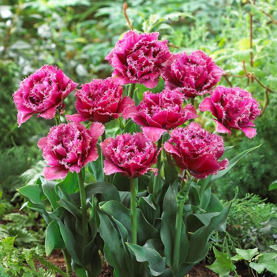Fringed tulips are known for their sassy, serrated edges, and exceptionally long bloom times. With the double flowered Mascotte, this is taken to a whole new level. Raspberry blooms are fully double, with each edge fancifully fringed.