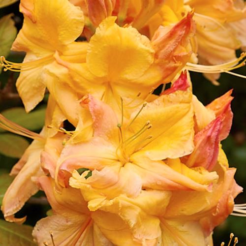 Produces flowers that are a soft peach pink with deeper peach markings which start to appear in early spring and through to summer. A hardy, deciduous shrub that prefers to be grown in dappled light. Requires soils that are rich in humus, are slightly acidic, moist and free-draining. Grows to between 1.7m and 2m in height.