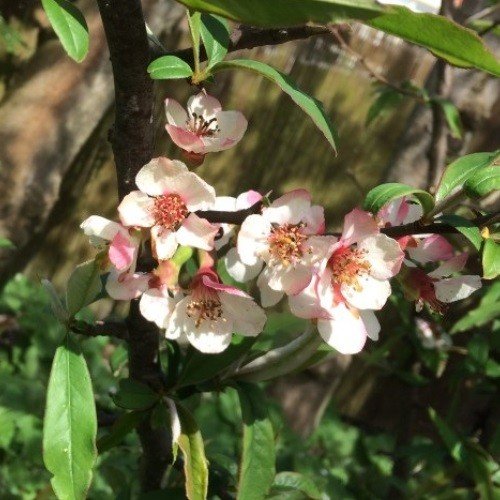 Also known as Chinese Quince. A deciduous shrub with white flowers that have a tinge of pink followed by fruit that are edible once cooked. May be grown in full sun or in dappled shade where soils are fertile and free-draining. Suitable for growing as hedges. Hardy and deciduous.