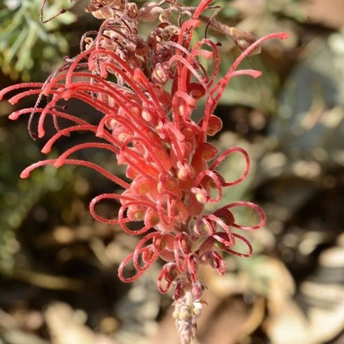 A frost tolerant, evergreen shrub that produces large red flowers from Winter and through Summer with silver-green foliage that has an arching growth habit. May be grown in either full sun or partial shade where there is free-draining soils and suitable for growing containers. Avoid using fertilisers that contain phosphate.
