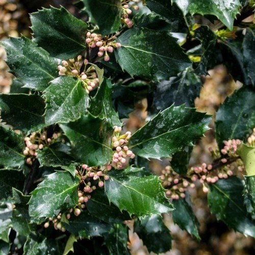 Also known as Blue Holly or Meserve Holly. This variety is the male pollenizer for Ilex Blue Angel and Ilex Blue Princess. Has glossy, dark green foliage without the prickles and produces white flowers that do not form berries. Easy to grow in average, slightly acid soil that is free-draining. Plant in full sun or part shade and sheltered from cold winter winds.