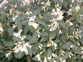 Graceful, slow-growing, compact shrub similar to Osmanthus with small, glossy dark-green, toothed, 2.5-5cm long leaves and small, fragrant, white flower clusters
