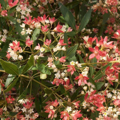 Also known as NSW Christmas Bush. An evergreen shrub/small tree with narrow foliage that appear in bronze then becoming green as they mature. Has small white flowers then followed by small fruit. Prefers full sun and free-draining soil. Protect from frost.