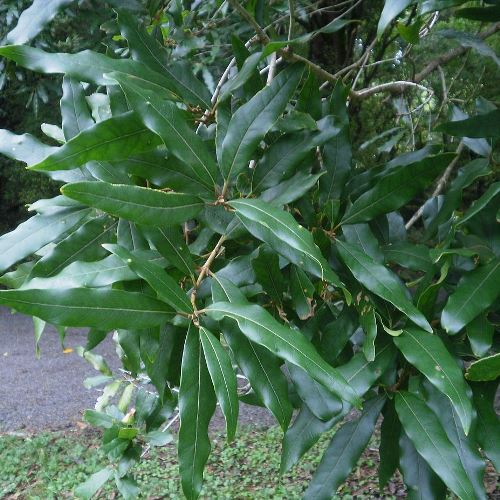 Better known as Black Maire. A hardy, evergreen native tree with long, leathery, dark green foliage and forms a dense crown. The timber has been used for various products such as furniture and boat building, plus the wood has been used as firewood.