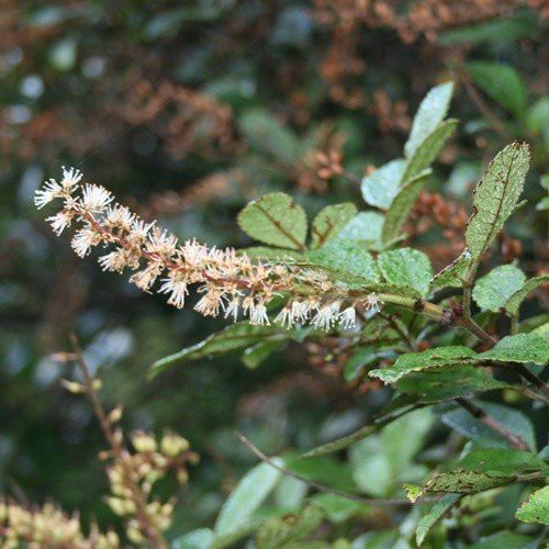 Also known as Towai and Tawhero. Has glossy, leathery foliage and produces spikes of white flowers during spring through into early summer. Grows well in most types of soil that are free-draining and provide a cool root run. Suitable for growing as a feature/specimen tree. A hardy, evergreen native.