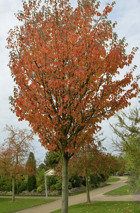 Attractive tree of erect habit, leaves covered with fine white down,brilliant autumn colours.4m.