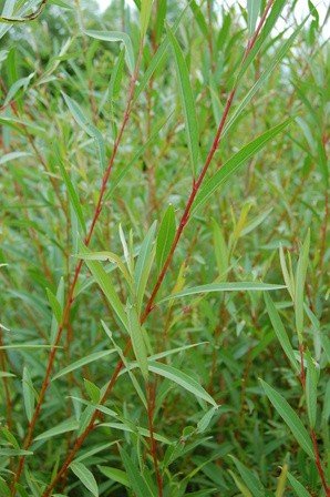‘Britzensis’ is a vigorous medium-sized deciduous tree of compact habit, with bright red young shoots and narrow lanceolate mid-green leaves and insignificant yellowish catkins in spring. Deciduous