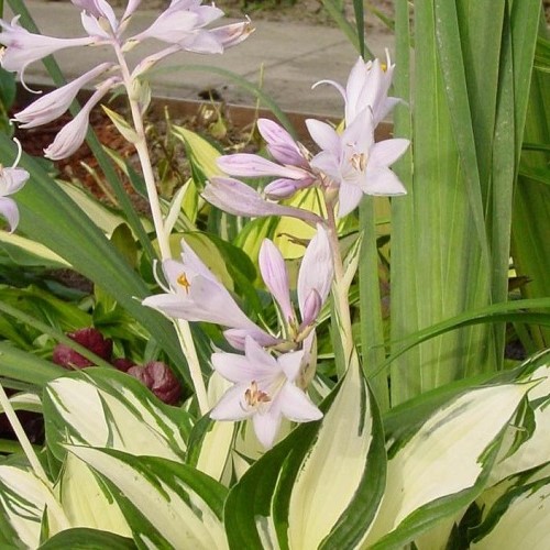 A beautiful form with variegated foliage that emerge in Spring being creamy-yellow and green then becoming green and pure white during Summer and produces pale lilac coloured flowers. Best grown in a shady position where soils are evenly moist, fertile and free-draining. Herbaceous perennial that may be use for ground cover.